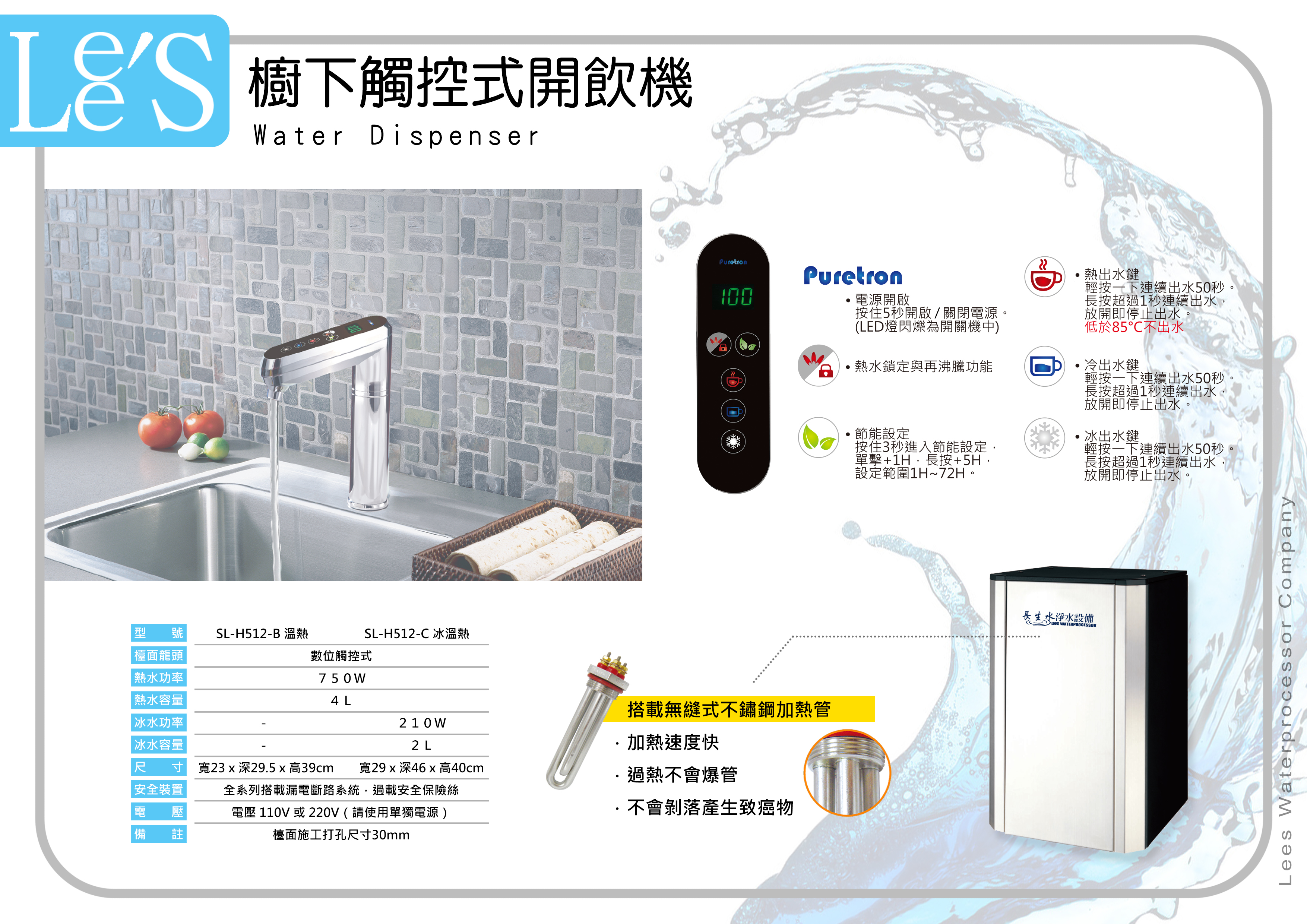 ▶ 科技程式控制出水 ▶ LED螢幕溫度顯示 ▶ 漏電斷路保護裝置 ▶ 保險絲安全防護器 ▶ 熱水防燙安全鎖定
