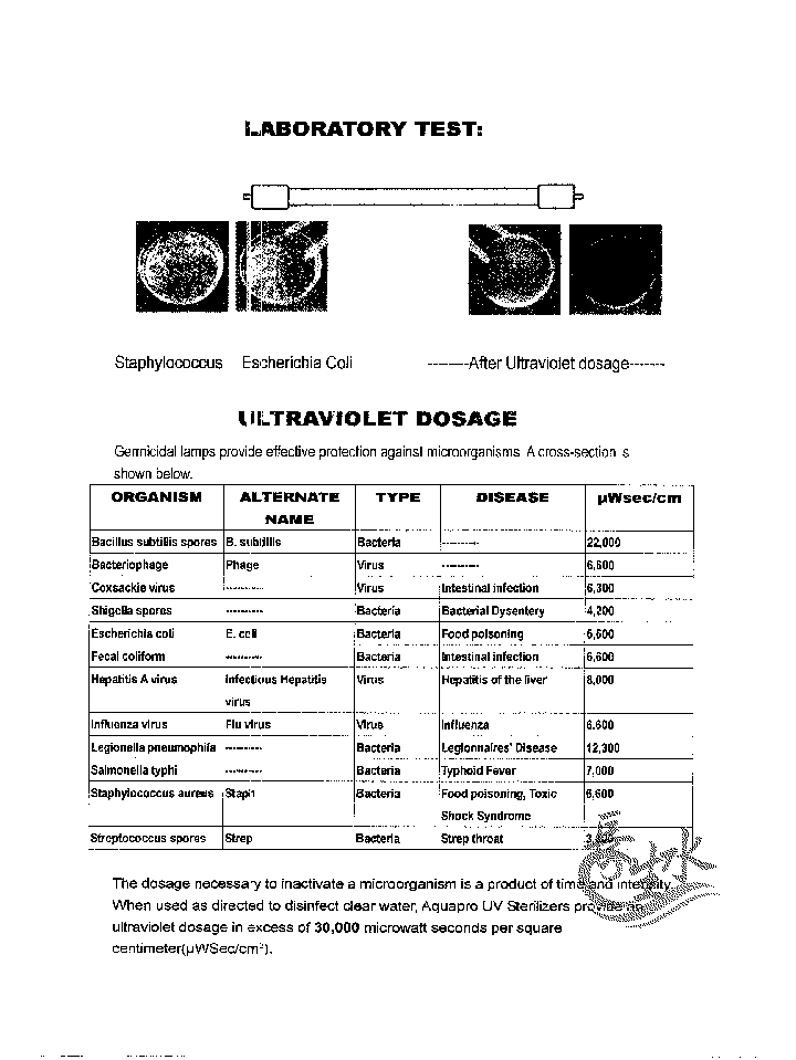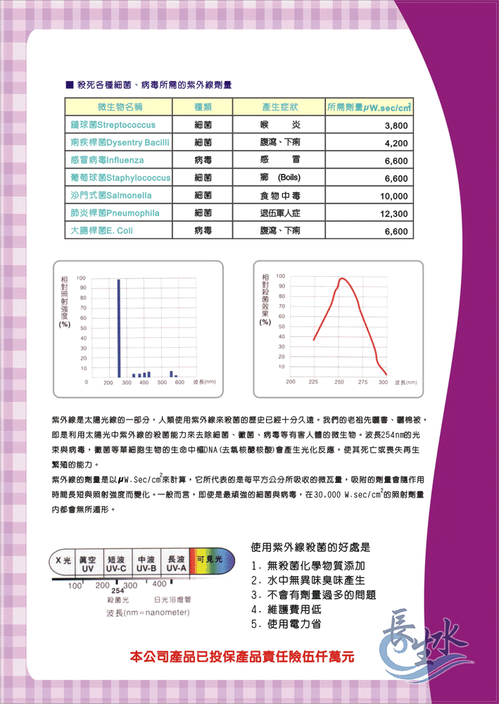 一般而言,即使是最頑強的細菌與病毒,在30,000μW.sec/cm2的照射劑量內都會無所遁形。